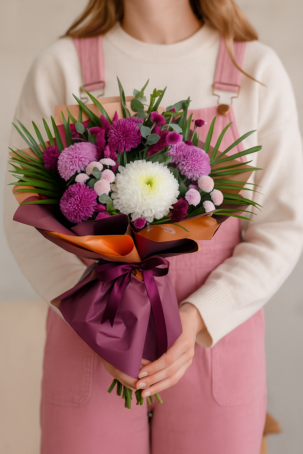 Her biri özenle seçilmiş taze çiçeklerden hazırlanmış bu el yapımı buket, bulunduğu her ortama canlılık ve şıklık katar.