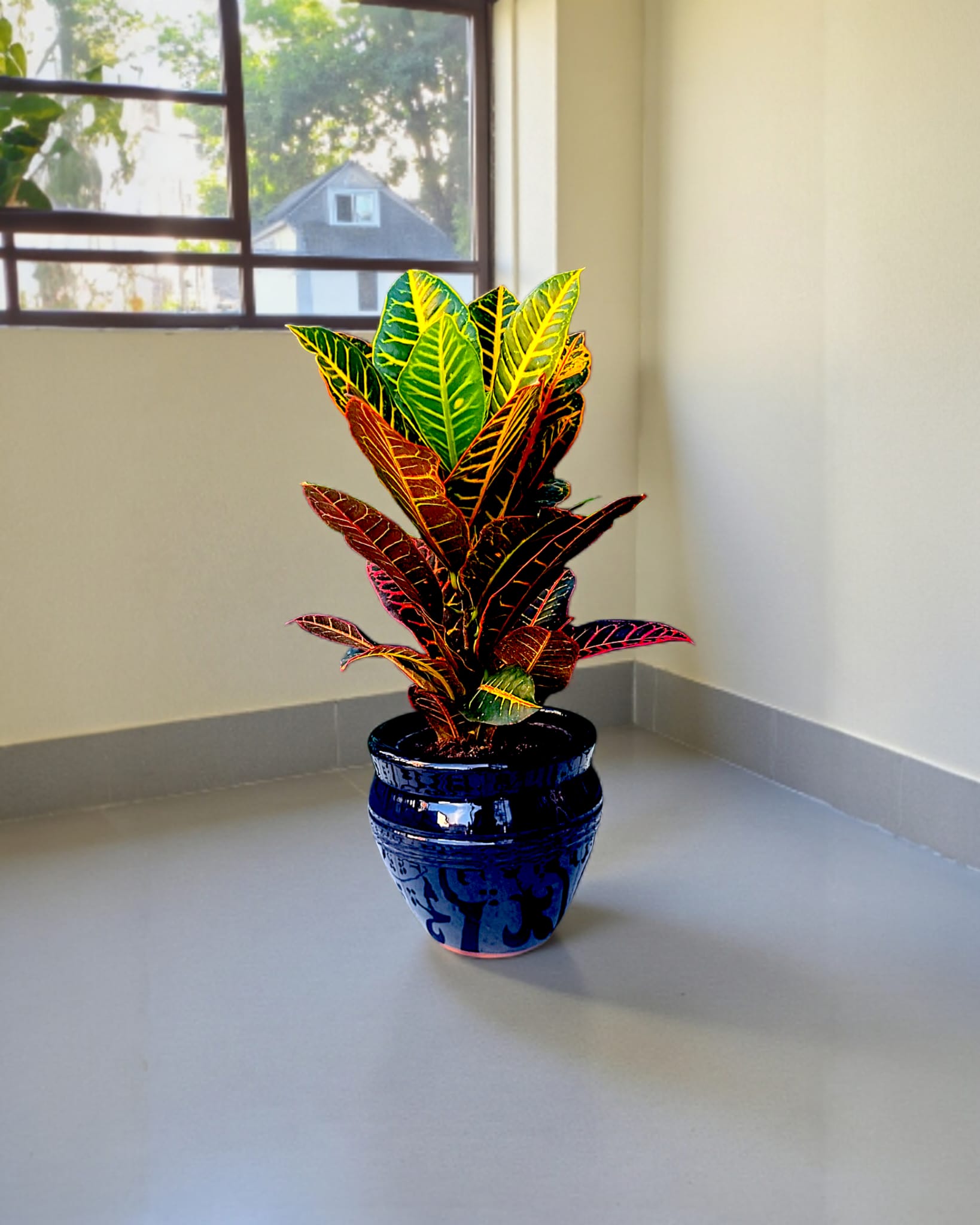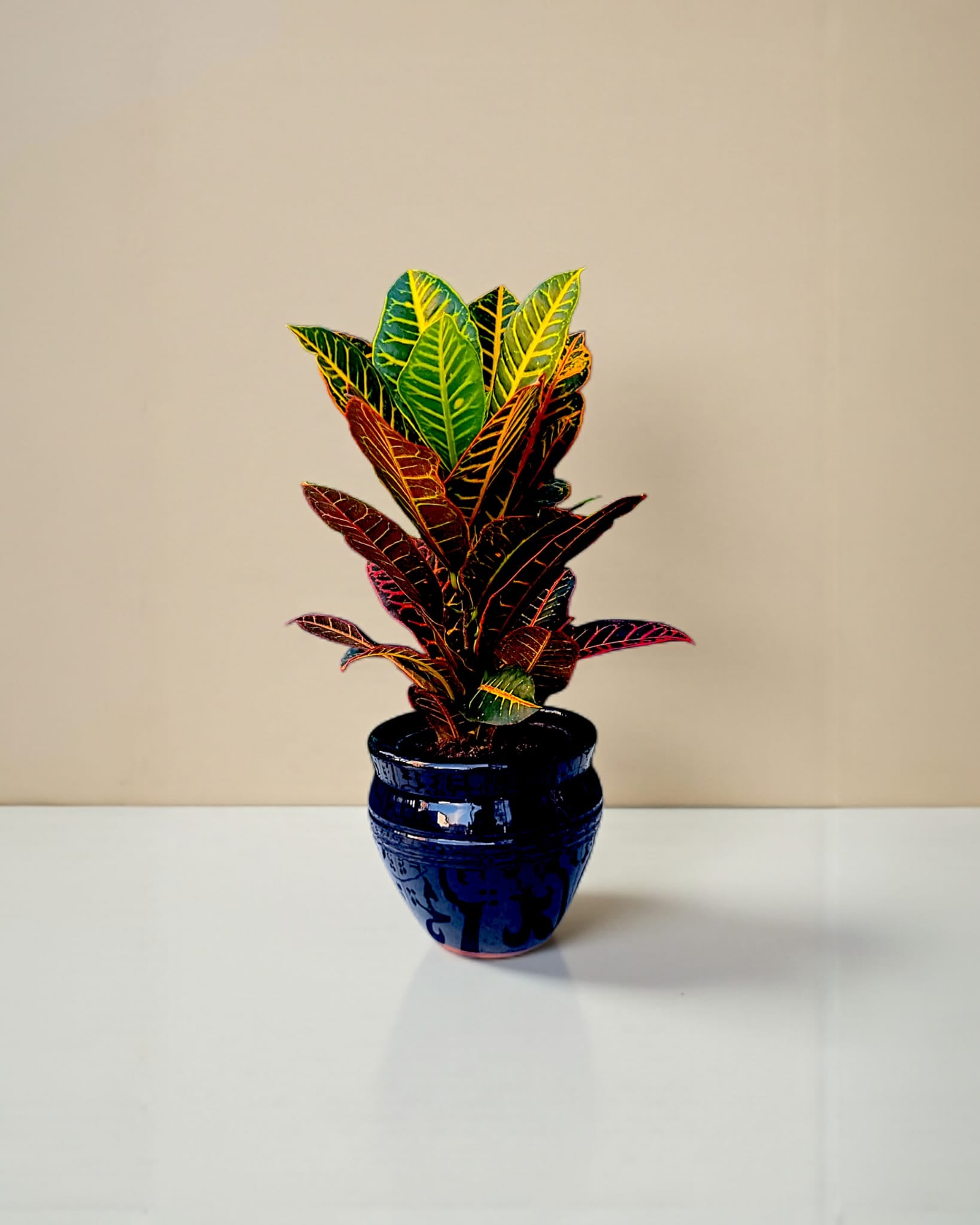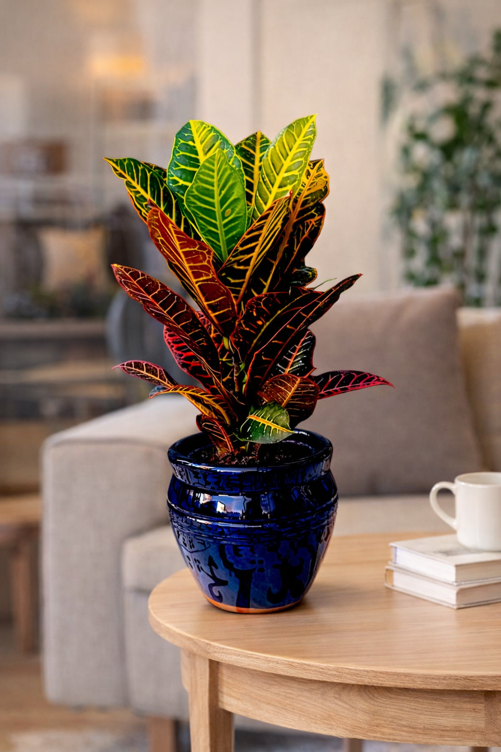 Canlı renkleriyle ortama enerji katan Croton, doğru konumlandırıldığında uzun süre formunu korur. Yeni ev hediyesi, ofis için dekoratif bitki ya da sevdiklerinize farklı bir yeşil dokunuş sunmak için ideal bir tercihtir.