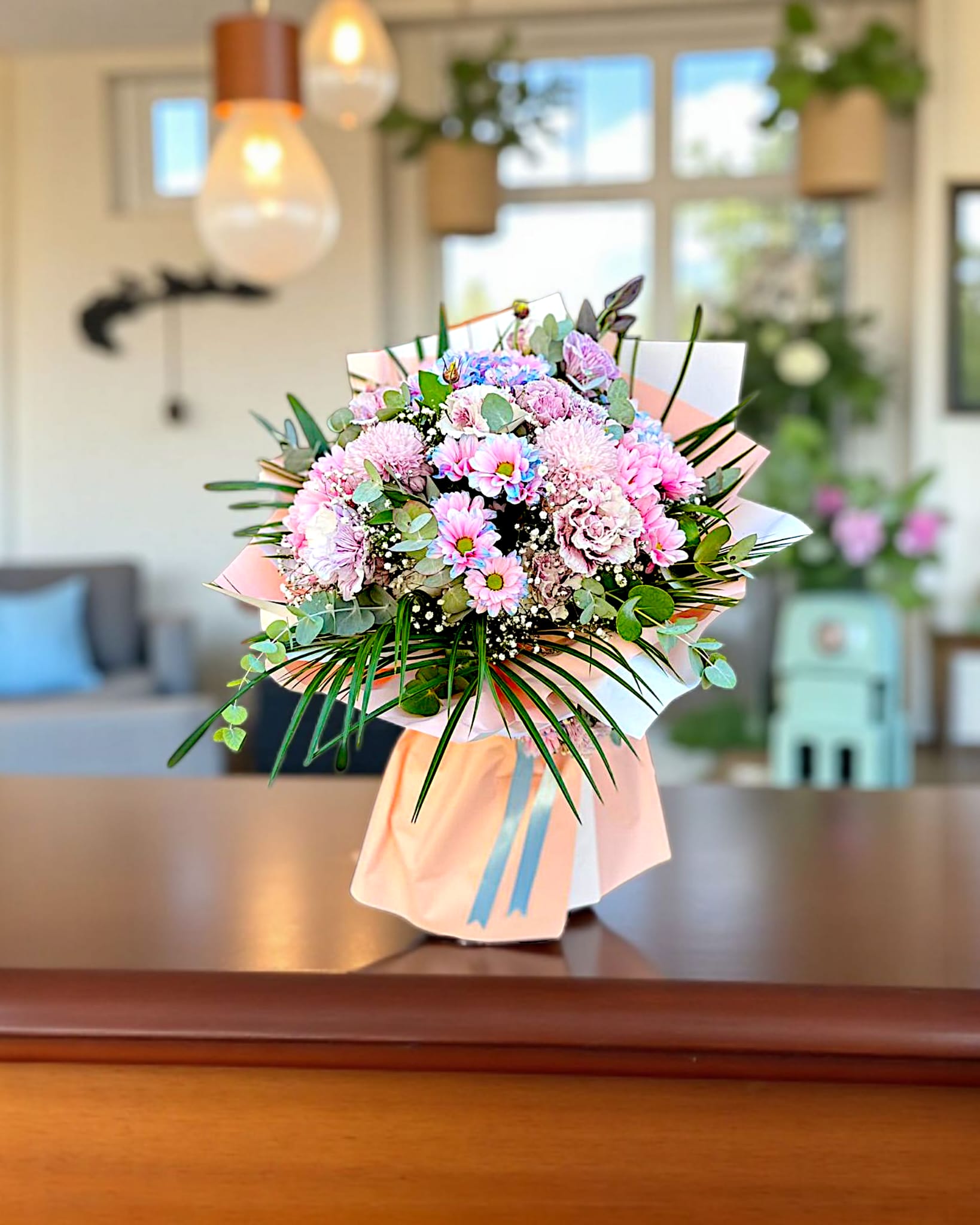 Renklerin en yumuşak hâliyle buluştuğu Pastel Dreams, duygularınızı zarafetle anlatmanın en şık yoludur. Pembe, mor ve lila tonlarının romantik uyumu, doğallığıyla büyüler. Her detayı özenle hazırlanmış bu buket; doğum günü, yıldönümü, özel kutlama veya “seni düşünüyorum” demenin en zarif hâlidir.