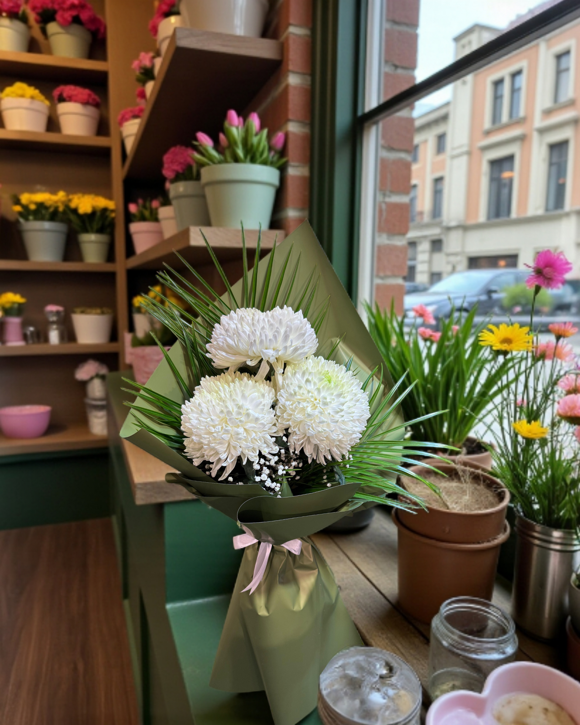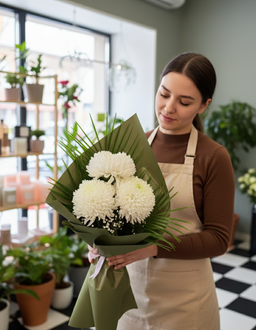 Minimalist, ferah ve zamansız bir görünüm sunan bu buket, sevdiklerinize huzur, incelik ve zarafet taşıyan anlamlı bir hediye olur.
